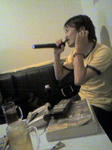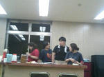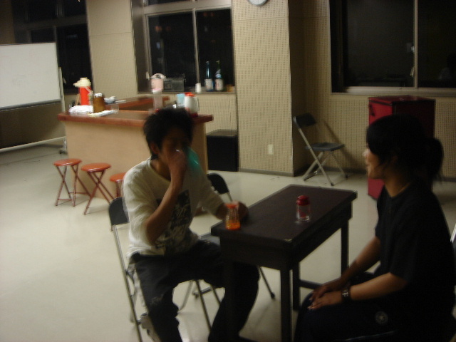 稽古の休憩にてコントを楽しむ加藤君と裕子。